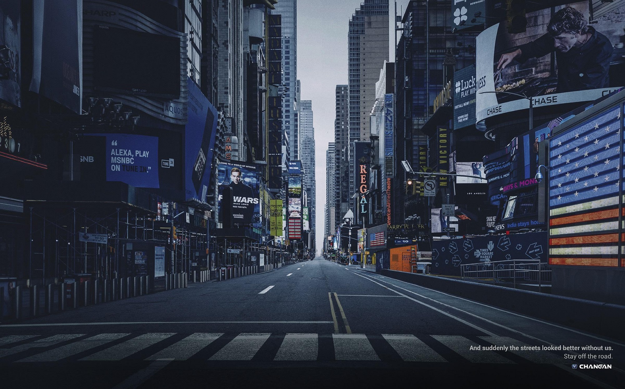 COVID-19 has most of the world in lockdown, including us. So we started looking outside way more often and noticed that streets were empty, but that didn’t bother us. Changan believes that in this context, streets look way better empty. So let’s stay safe and keep them that way. And suddenly the streets looked better without us. Stay off the road.