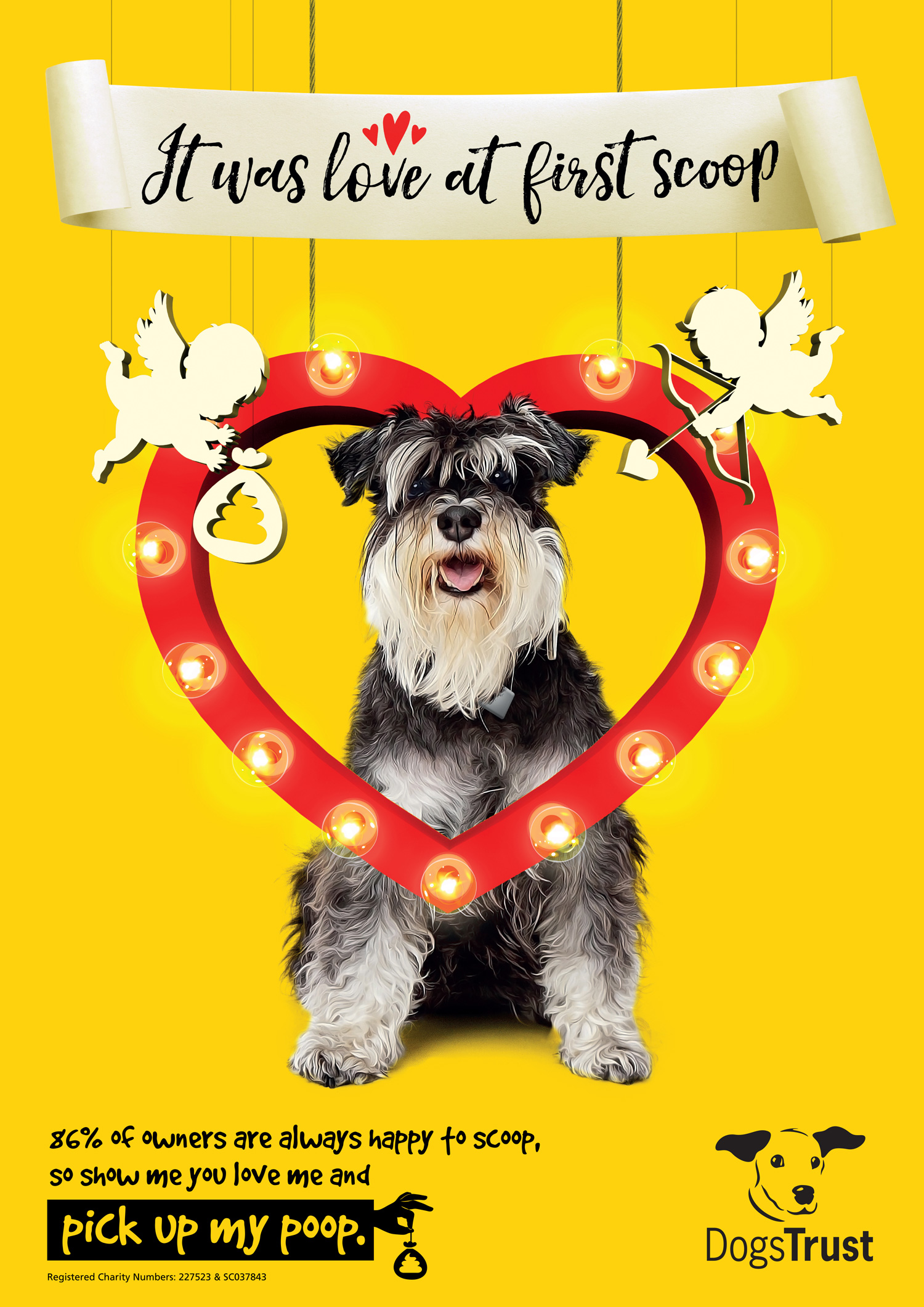 To mark this years The Big Scoop campaign, an initiative aimed at encouraging everyone to pick up after their dogs, eight areas in the UK have been given attention grabbing installations including poo bag dispensers, bench wraps and boards, posters and bin stickers that feature “love lines” from dogs to dog owners.