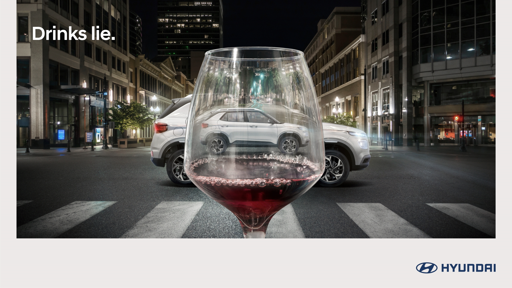 With the aim to raise awareness about the importance of not drinking alcohol when driving, “Drinks lie” campaign was created by Hyundai and Arena by Havas, and it is composed of graphics that reflect the effect that occurs when driving under the influence of alcohol.