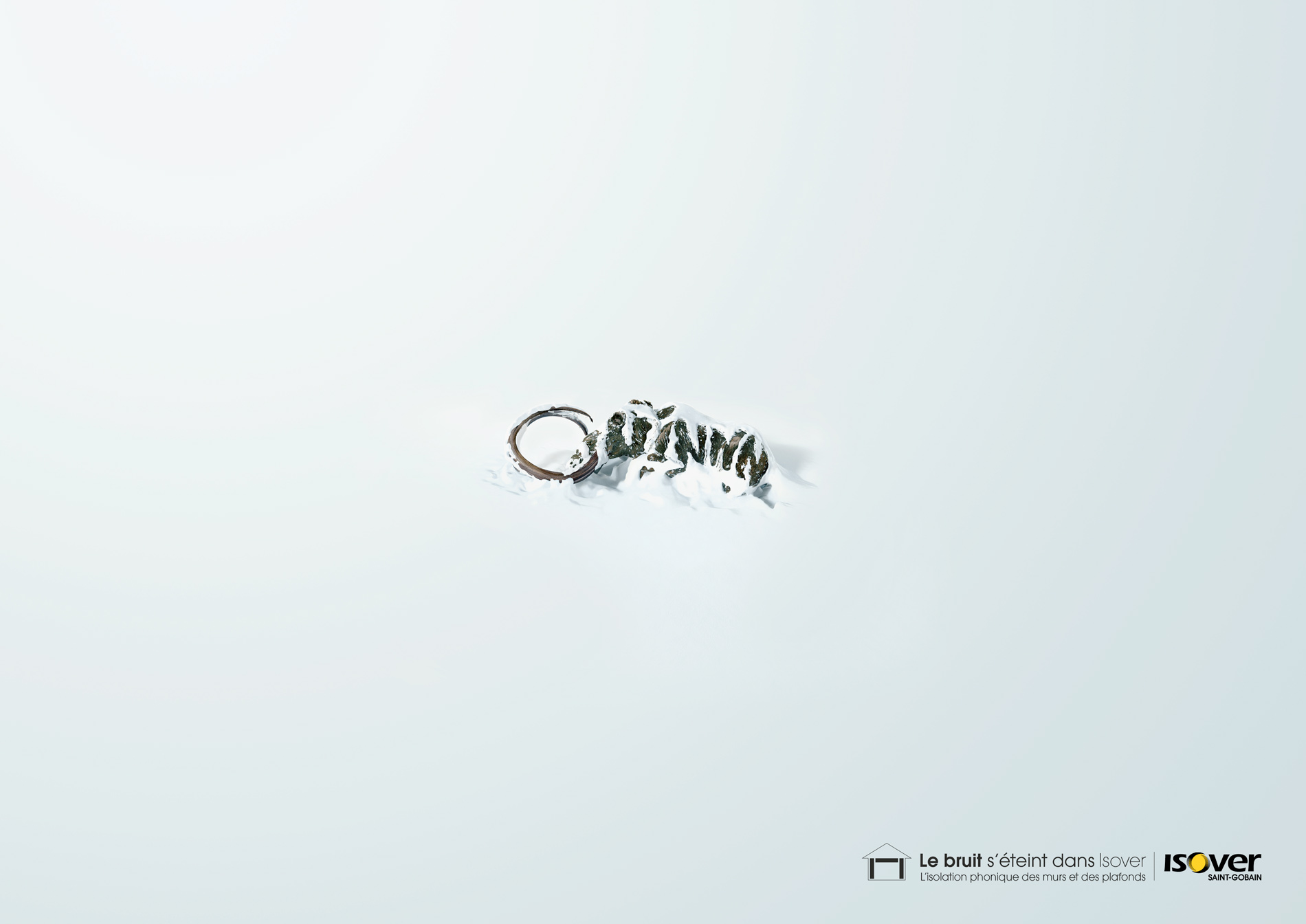 "Ouinnnn (the cry of a baby in french) Noise perishes in Isover. Acoustic insulation for walls and ceilings."