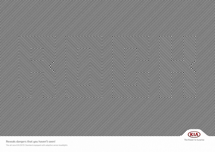 "Reveals dangers that you haven't seen! The all-new KIA CEE'D. Standard equipped with adaptive xenon headlights."