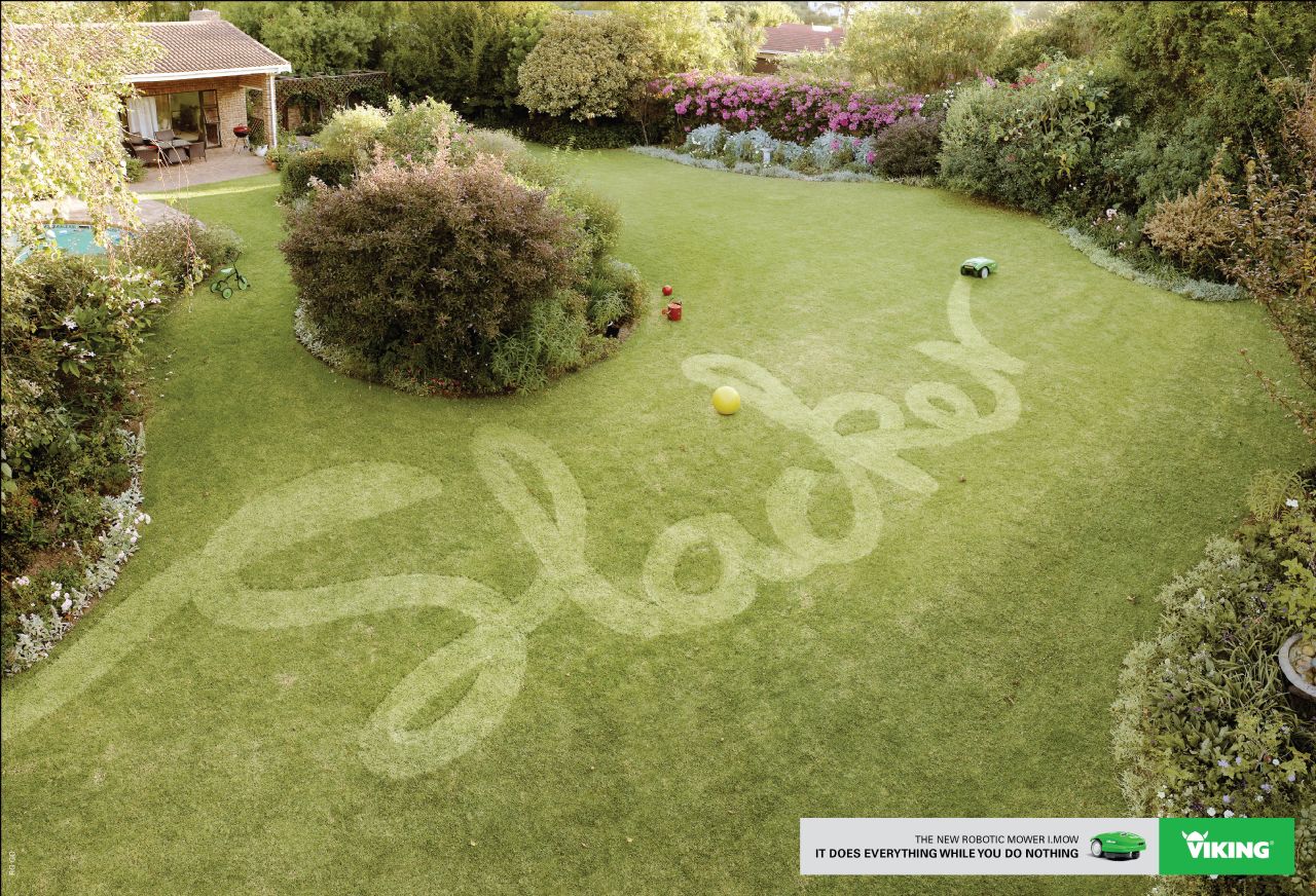 "The new robotic mower LMow. It does everything while you do nothing."