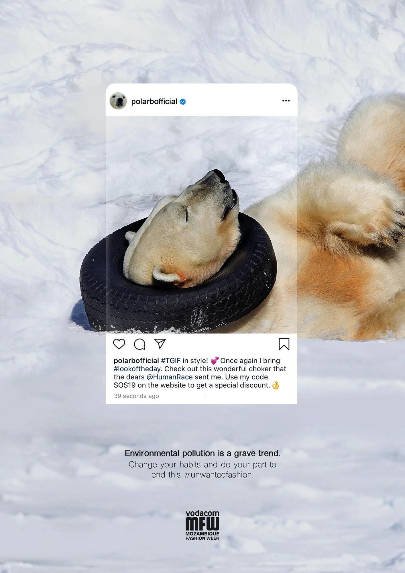 More than 100,000 marine animals die each year from trash dumped into our planet’s oceans. In Mozambique, in addition to the lack of a sustainable recycling system, there is a bad habit of littering along the country's vast coastline, mainly on beaches and especially during the holiday season. December 4 was World Wildlife Conservation Day and in order to draw society's attention to this situation, Mozambique Fashion Week launched the Unwanted Fashion campaign, transforming the trash that is dumped into the oceans in fashion accessories and the animals in digital influencers. The initiative wasn’t just live on digital. Also offline, the event's catwalk was entirely built with 5,000 tiles made from 250,000 plastic bottle caps. Mozambique Fashion Week also featured exhibits of sculptures of marine animals and a 6-meter tree, both made from recycled materials and illuminated with energy from solar panels. In all, more than 1 ton of plastic was used to build these works.