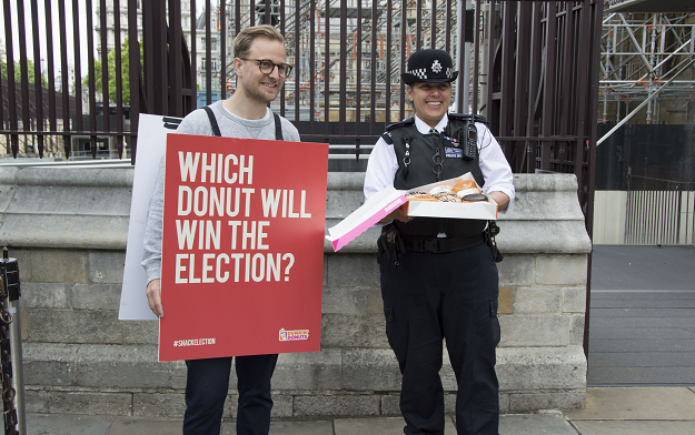 Dunkin’ Donuts is aiming to lighten the mood whatever the political outcome of today’s General Election Day