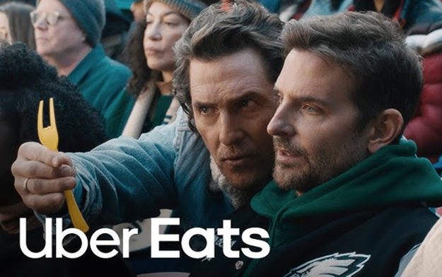 In Uber Eats' Super Bowl spot, Matthew McConaughey returns as the food-ball theorist, facing off against Bradley Cooper in a playful clash of beliefs