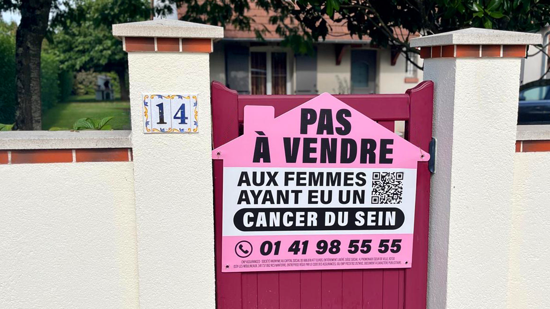 The outdoor campaign, created by Paris-based agency The Good Company, raises awareness of the issue in an impactful way, putting a twist on real estate “for sale” signs with an impactful and thought-provoking message: “Not for sale to women who have had breast cancer.” The signs redirect people to a dedicated phone line and a QR code which they can scan to obtain all the necessary information regarding loan insurance.