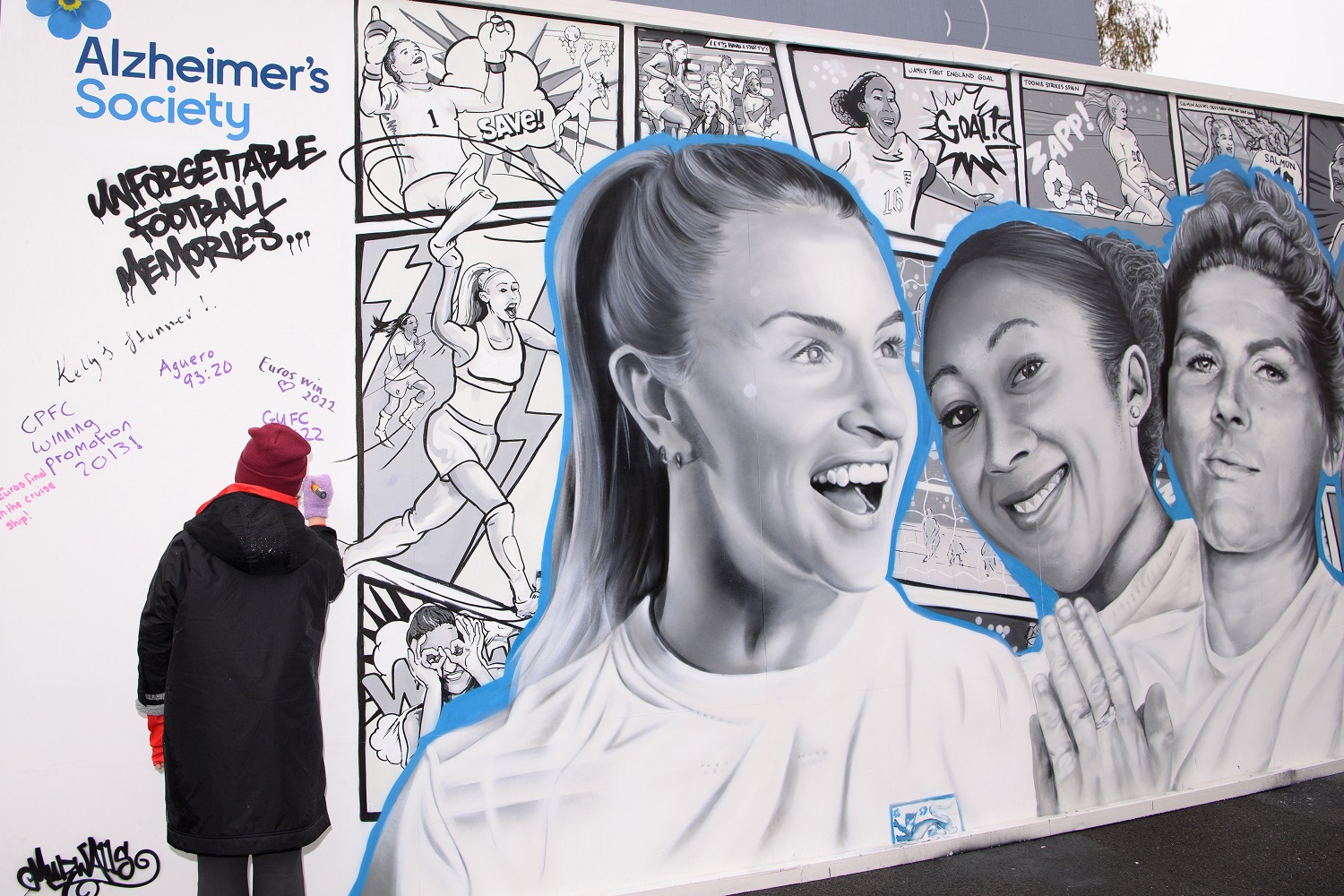 The fixture also saw sports correspondent Carrie Brown, whose parents are living with dementia, reveal a huge mural featuring unforgettable football memories from the England Women’s team. The inspiring installation, designed by MurWalls, allowed fans to add their own memories to the wall, encouraging conversation and raising awareness of the fact that although great football should be unforgettable, for many people with dementia, this isn’t often the case.