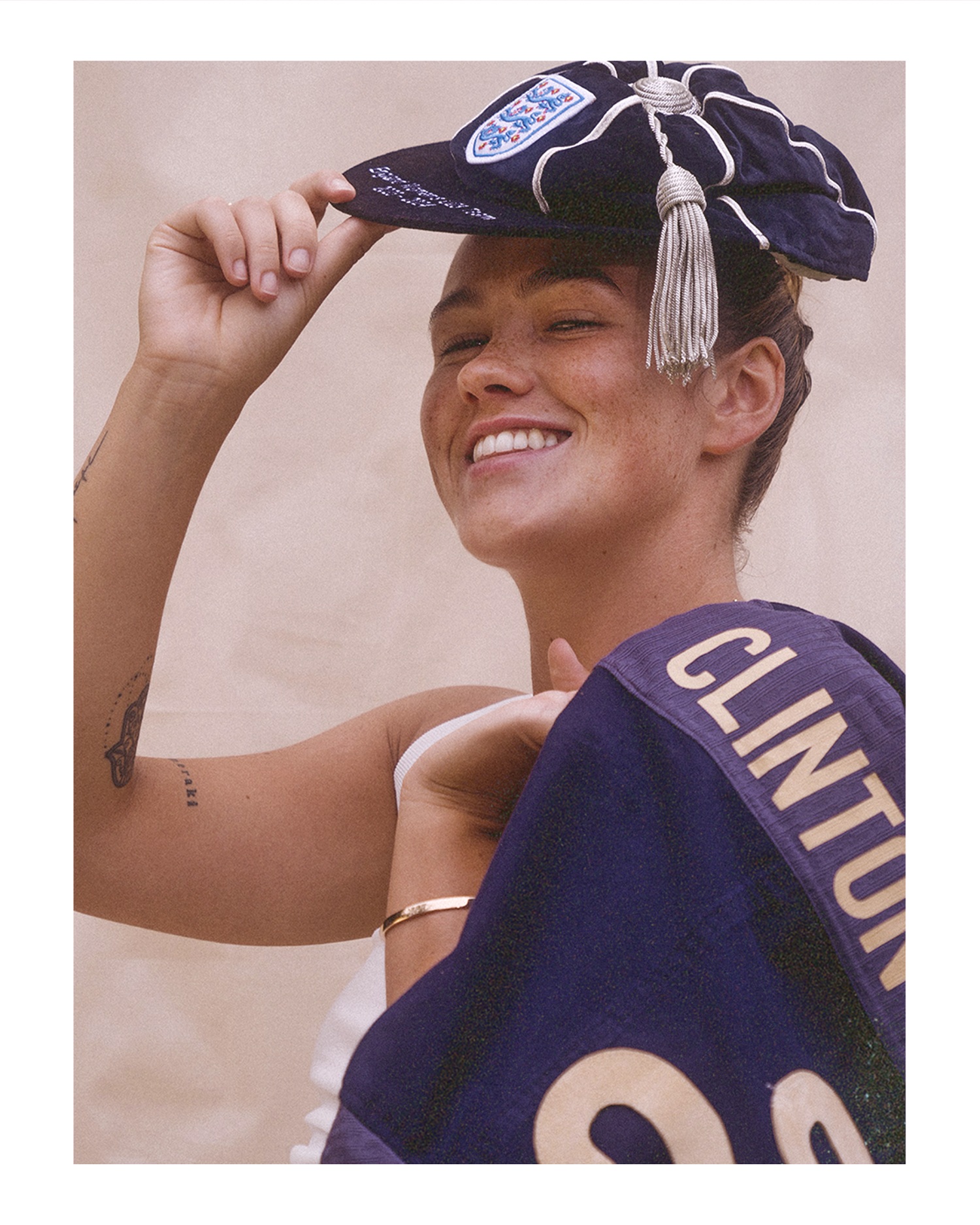 Each woman’s story is brought to life through intimate portraits, behind-the-scenes footage, and thoughtful design elements unique to her journey. Grace’s piece was created in London and captured in her family home in Liverpool, reflecting her personal journey to her footballing career.