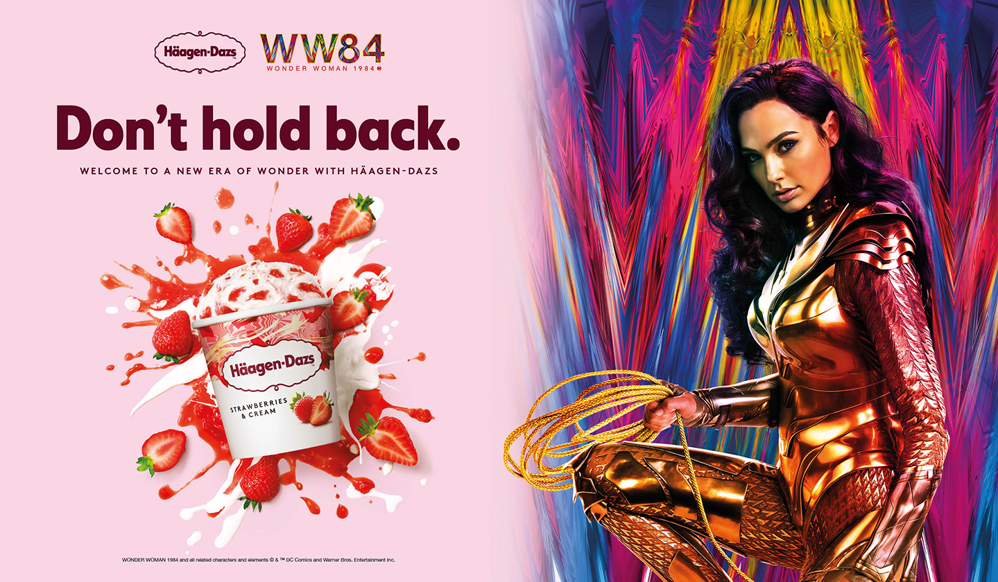 “At Häagen-Dazs, we strive to re- imagine ice cream experiences through disruptive, immersive and joyful activations. This collaboration with Wonder Woman 1984 is a great example of that: a distinctly bold yet joyful experience for our consumers as we start 2021, with a cultural icon and protagonist who is a bold, empowered and authentic embodiment of the brand’s Don’t Hold Back spirit perfectly aligned to the movie’s theme of hope and upliftment. This partnership is a perfect match as our own brands also call on women to be their real and authentic selves.’’