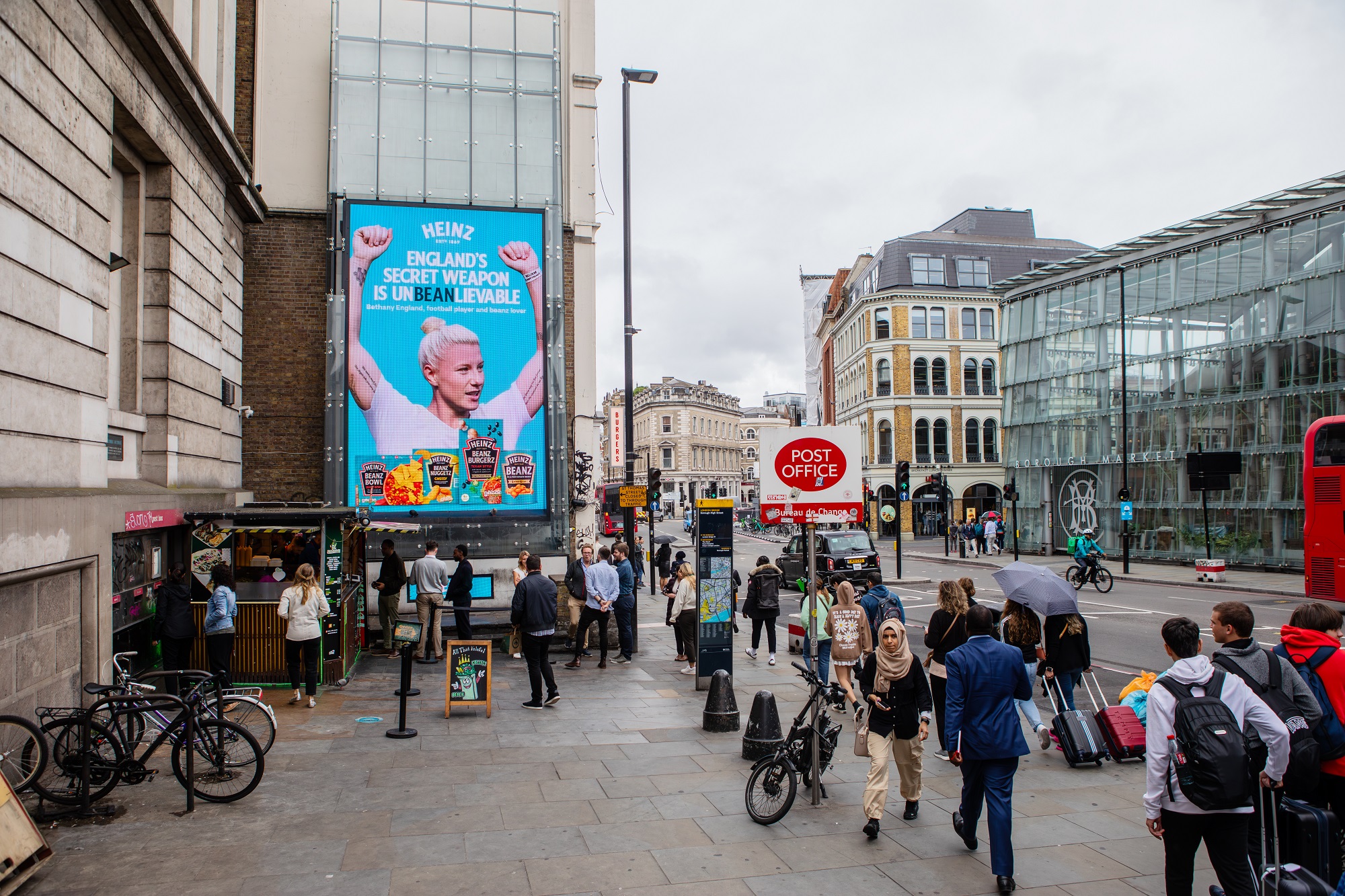 The OOH campaign, displayed at London Bridge and Canary Wharf features Bethany England holding her hands up in celebration, with the new product range prominently displayed at the front with the message: "England’s Secret Weapon is Unbeanlievable". A further two-part execution features Bethany England in full striker mode, with the question: "The Secret to England’s Success?" with a second execution featuring a Beanz Burger and the answer: "Being Full of Beanz".
