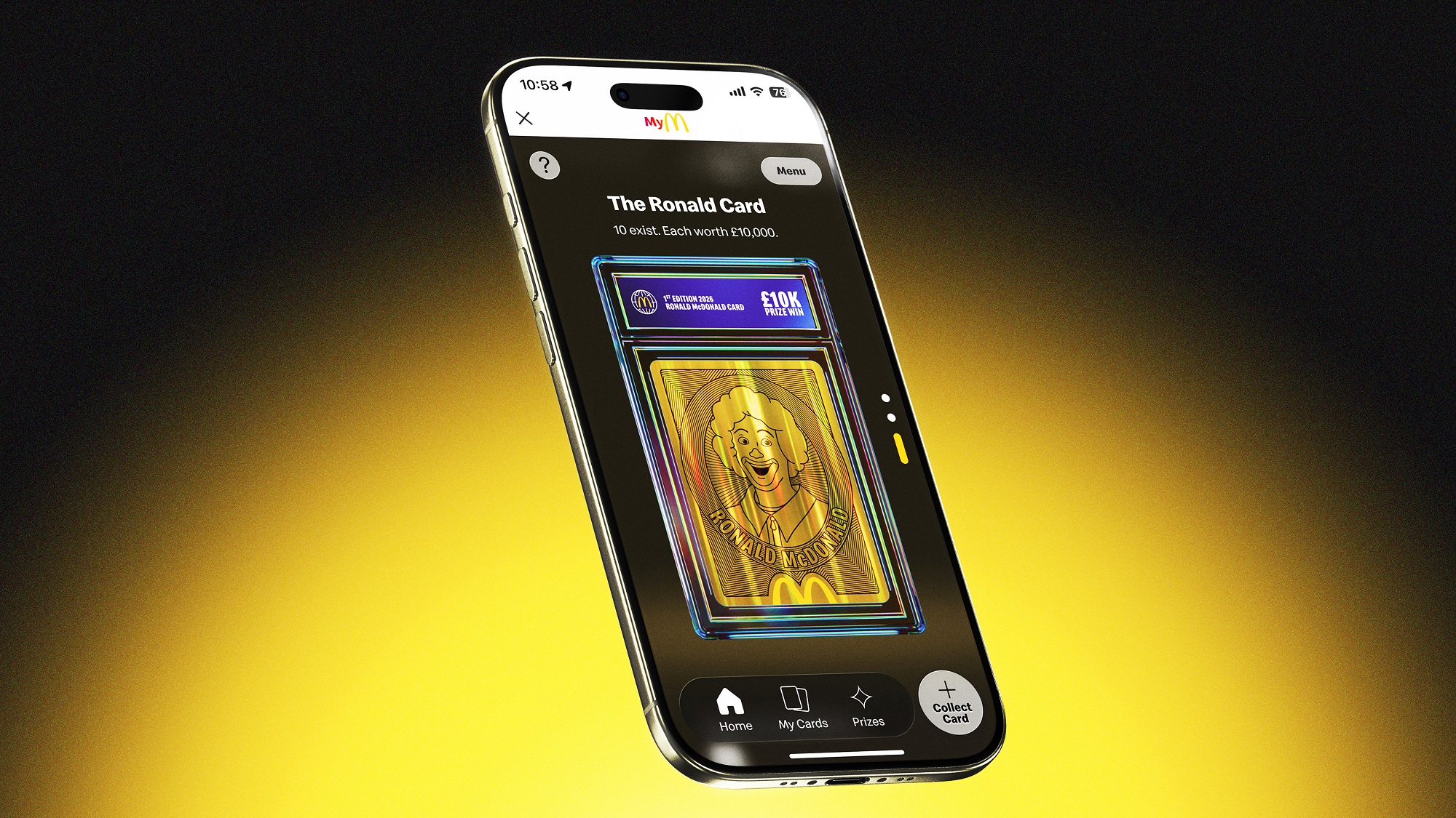 At the centre of the collection is a rare 25th card: a gold Ronald McDonald. Only ten exist nationwide, each worth a £10,000 cash prize, marking the character’s return to the McDonald’s universe for the first time in three decades.