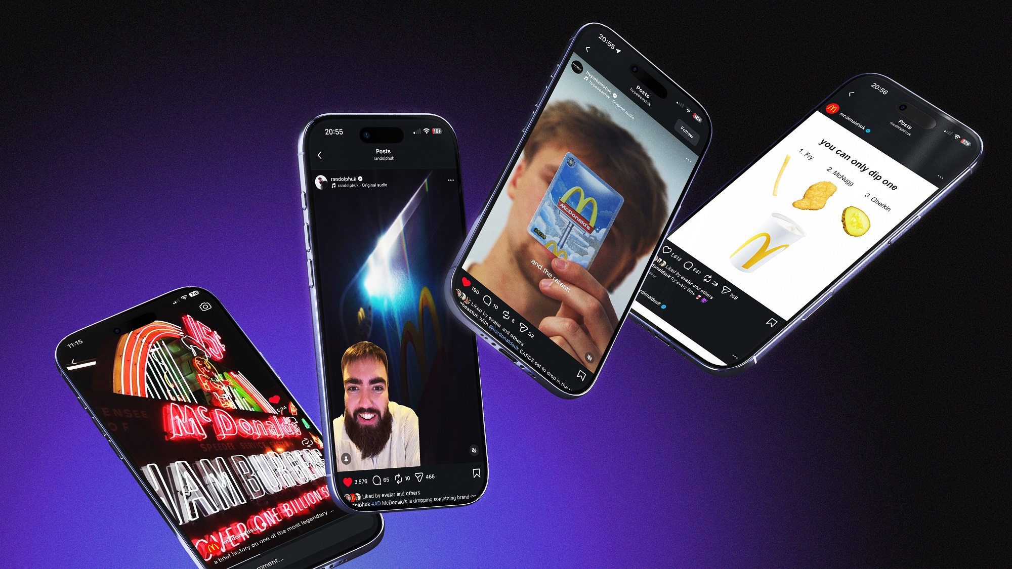 The hero film is supported by a suite of 10-second and 6-second cutdowns designed to highlight different elements of the promotion, including qualifying meals, free food rewards, in-app set completion and the ultra-rare Golden Ronald card.