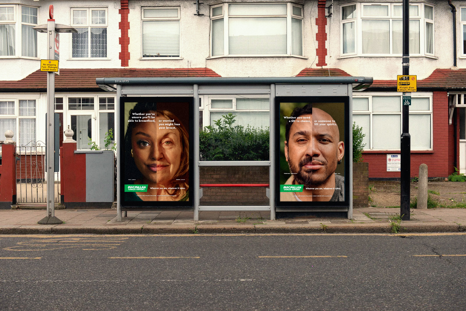 The work connects directly to Macmillan’s core message: “Whoever you are, we’ll do whatever it takes to get the right cancer support for you.” Other executions highlight the wide-ranging ways Macmillan supports people, from translation services and trusted and reliable cancer information, to helping people navigate dating after cancer. The faces represent the full diversity of people diagnosed with cancer across the UK, spanning ages, ethnicities, disabilities and more.