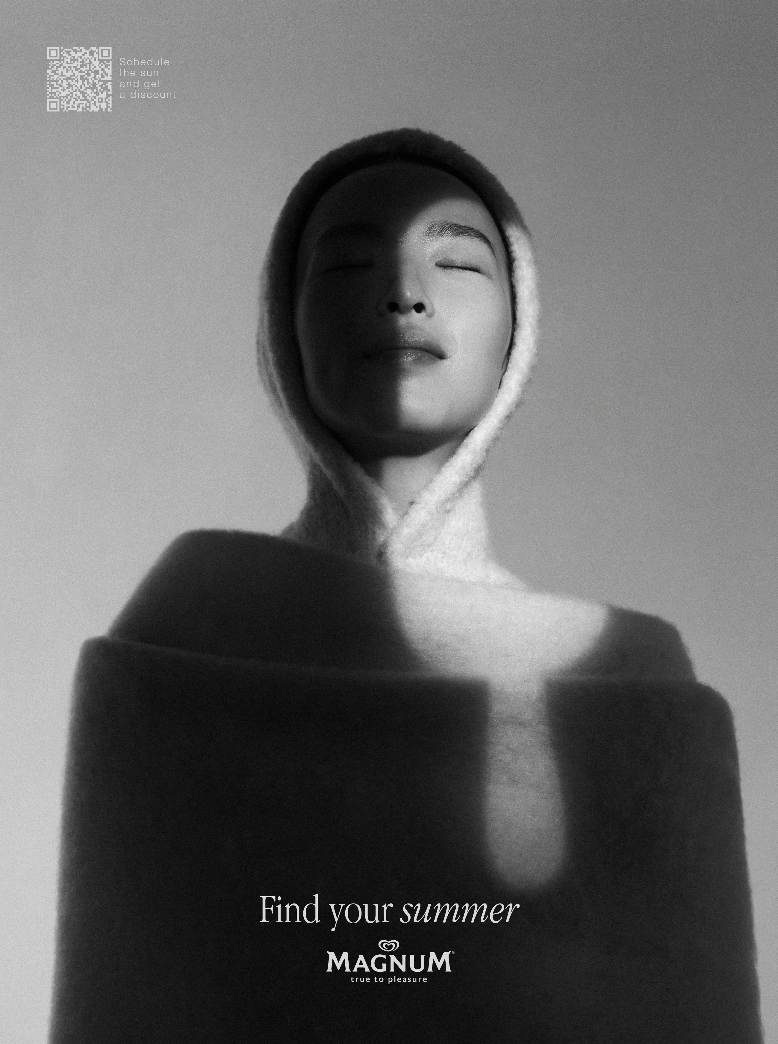"With “Schedule the Sun”, Magnum evolves the ‘Find Your summer’ platform while maintaining its distinctive identity. The new campaign comprises films and photographic executions developed in collaboration with acclaimed photographer Leslie Zhang. Produced entirely in black and white, the work captures rays of winter sunlight falling across diverse characters - celebrating fleeting moments of warmth that “Schedule the Sun” invites people to savour".