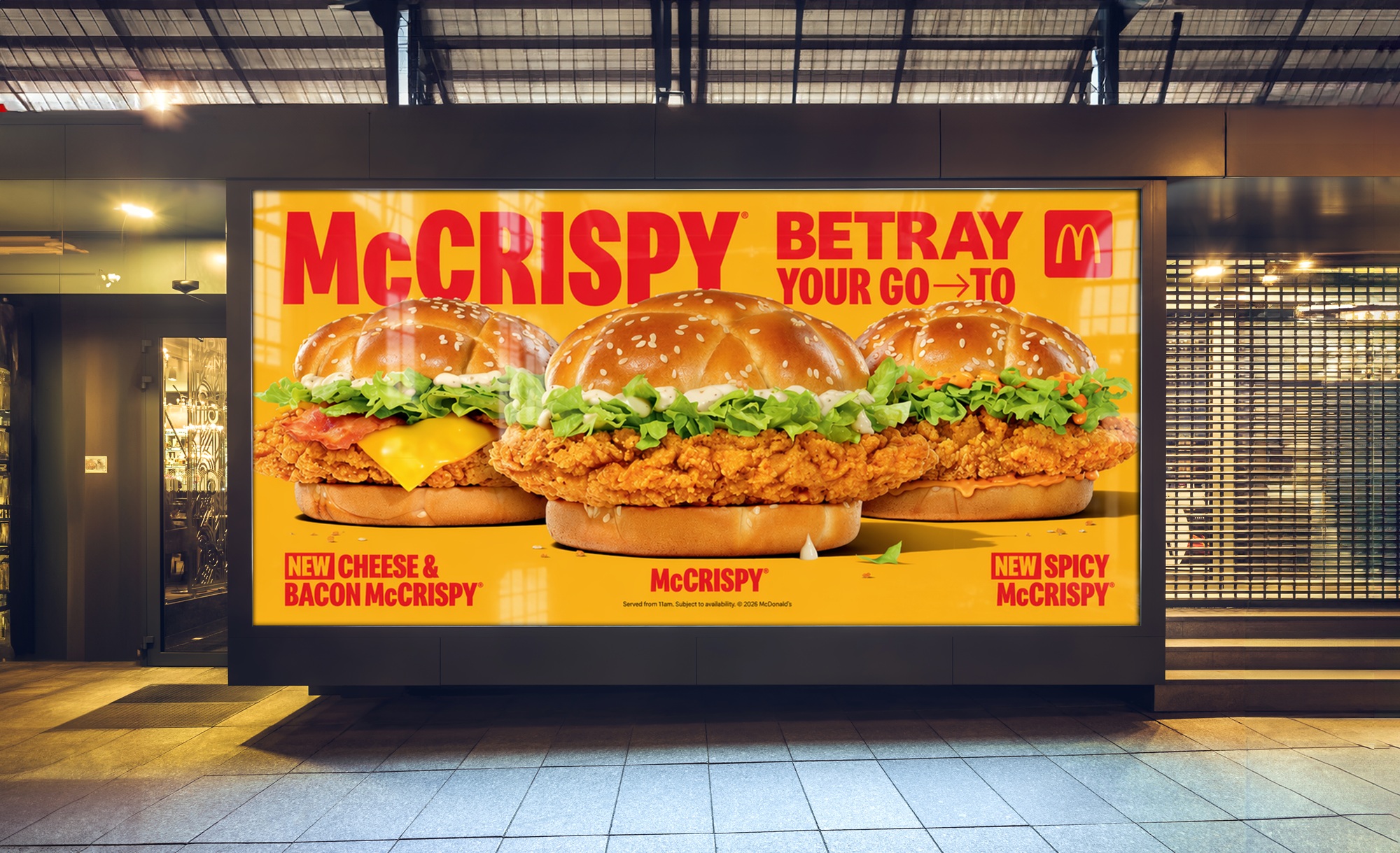 Launching from 20th April across the UK and Ireland, ‘McCrispy. Betray Your Go-To.’ is a fully integrated campaign spanning TV, social, OOH, radio, CRM and influencer partnerships, designed to challenge one of the brand’s biggest behavioural truths, that once people find their order, they rarely change it.