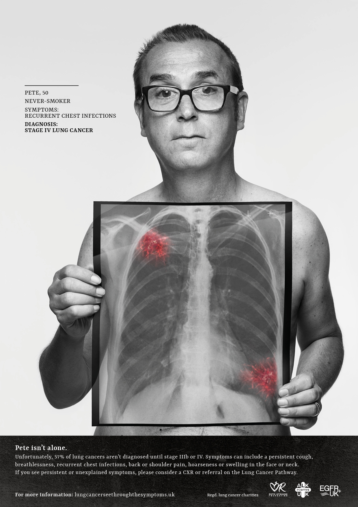 Developed with patient-led lung cancer charities EGFR+UK, ALK+ and the Ruth Strauss Foundation the campaign has been crowdfunded with generous support from friends and relatives and the advertising community.