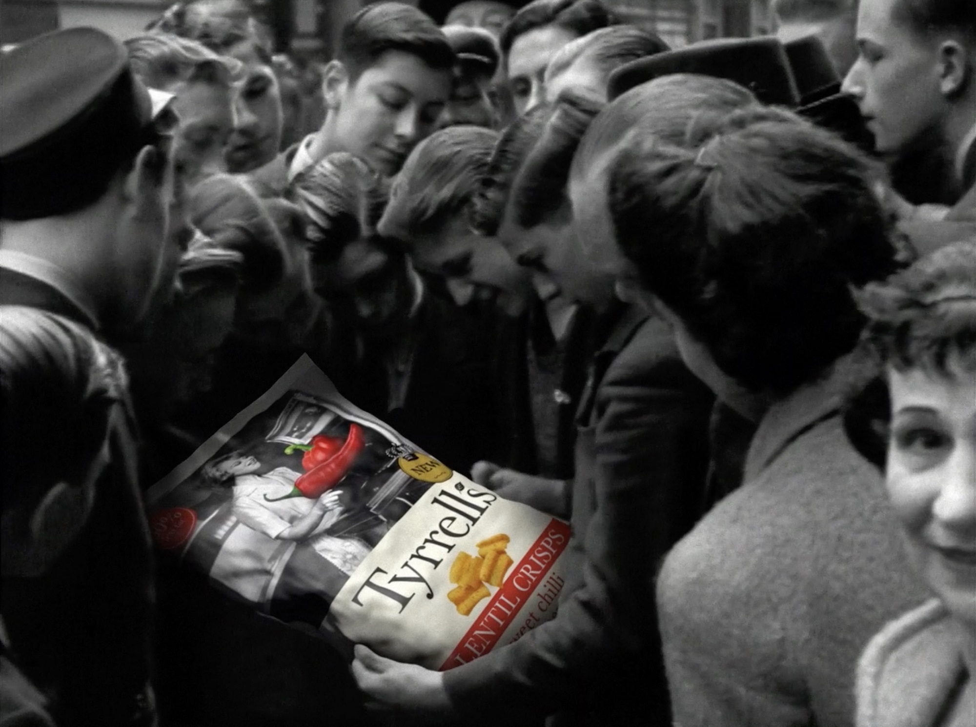 In the first ad campaign for Lentil Crisps, the new 20-second ad called "Splendid News" will appear on video-on-demand and social media, and will run until 21st August. The ad contrasts black and white Pathé footage of the public alongside eye-catching, larger-than-life colourful images of the lentil crisps in Sour Cream & Onion and Sweet Chilli & Red Pepper flavours.