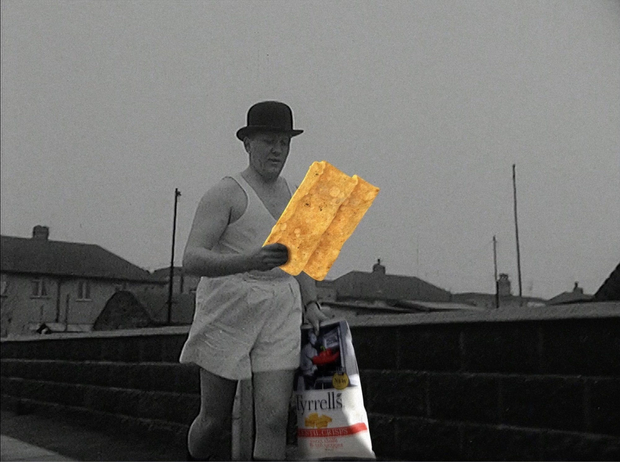 The spot takes a humorous look at the launch announcing the “breaking news” headline, as consumers are at fever pitch, going crazy to get a view of the oversized packets of Tyrrells Lentil Crisps, with extra-large, tasty ingredients such as chilli, peppers and chives wheeled in wooden boxes to production, which are “getting pulses racing”. One punter, Neville, is seen running home dressed in shorts and bowler hat, with a large pack of Sweet Chilli & Red Pepper Lentil Crisps under his arm, “to nosh a bag” eager to enjoy the tantalisingly delicious taste of Tyrrells. The accompanying voiceover says: “Why not try them yourself? They’re ‘Tyrrellbly Tyrrellbly Tasty’.