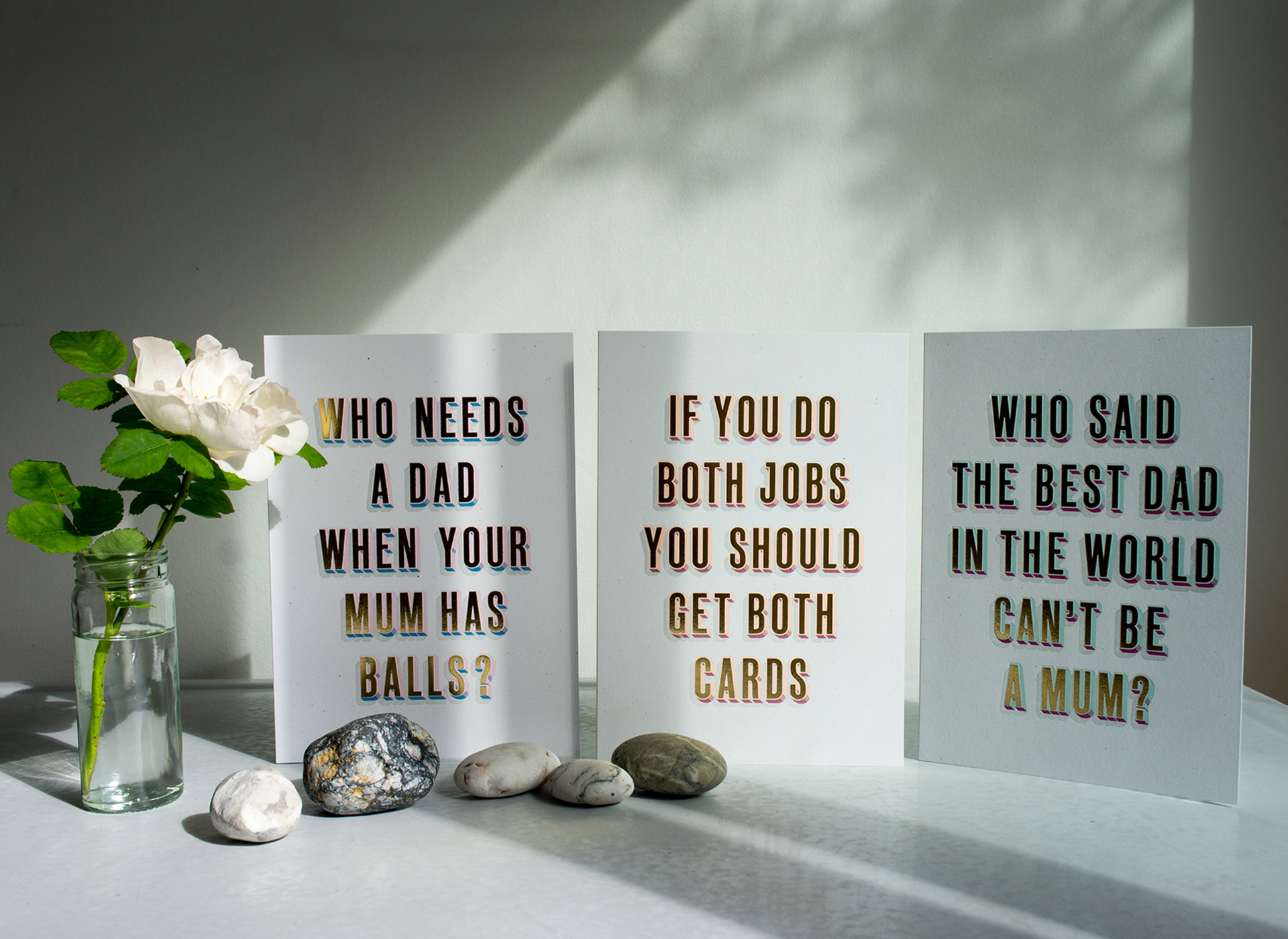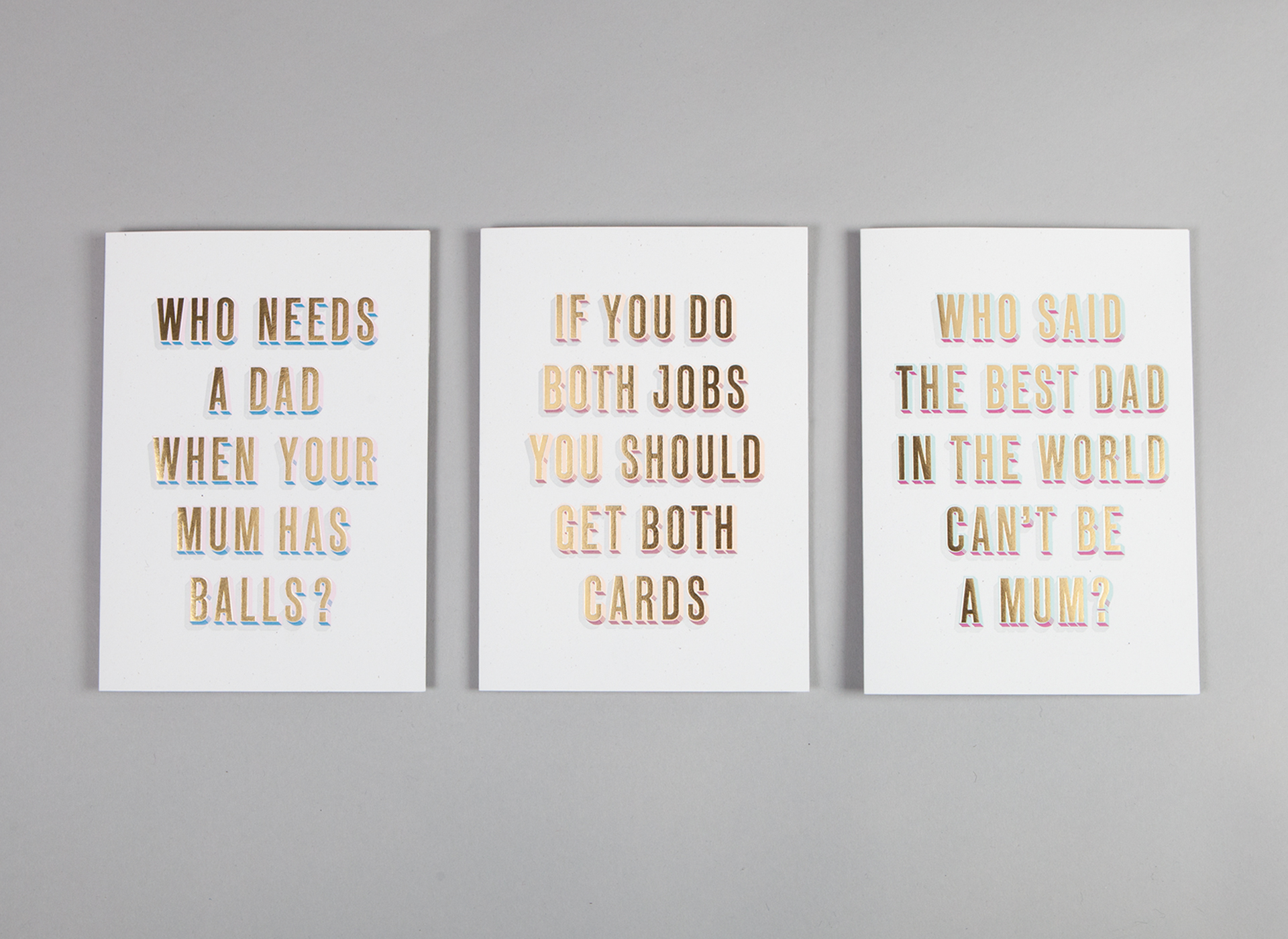 There are three Father’s Day cards to choose from, including one that reads ‘Who needs a dad when your mum has balls?’ and another saying ‘Who said the best dad in the world can’t be a mum?’.