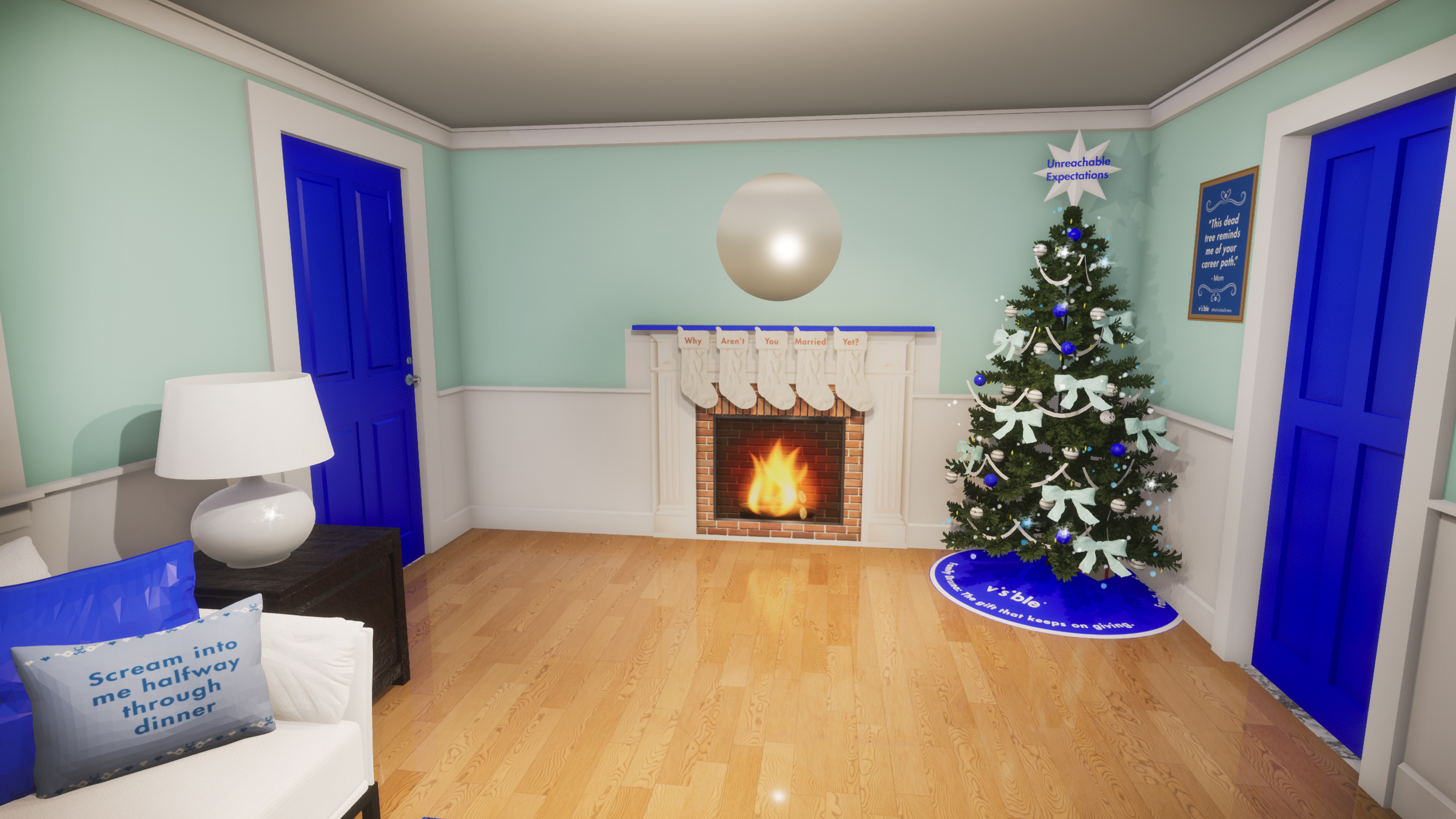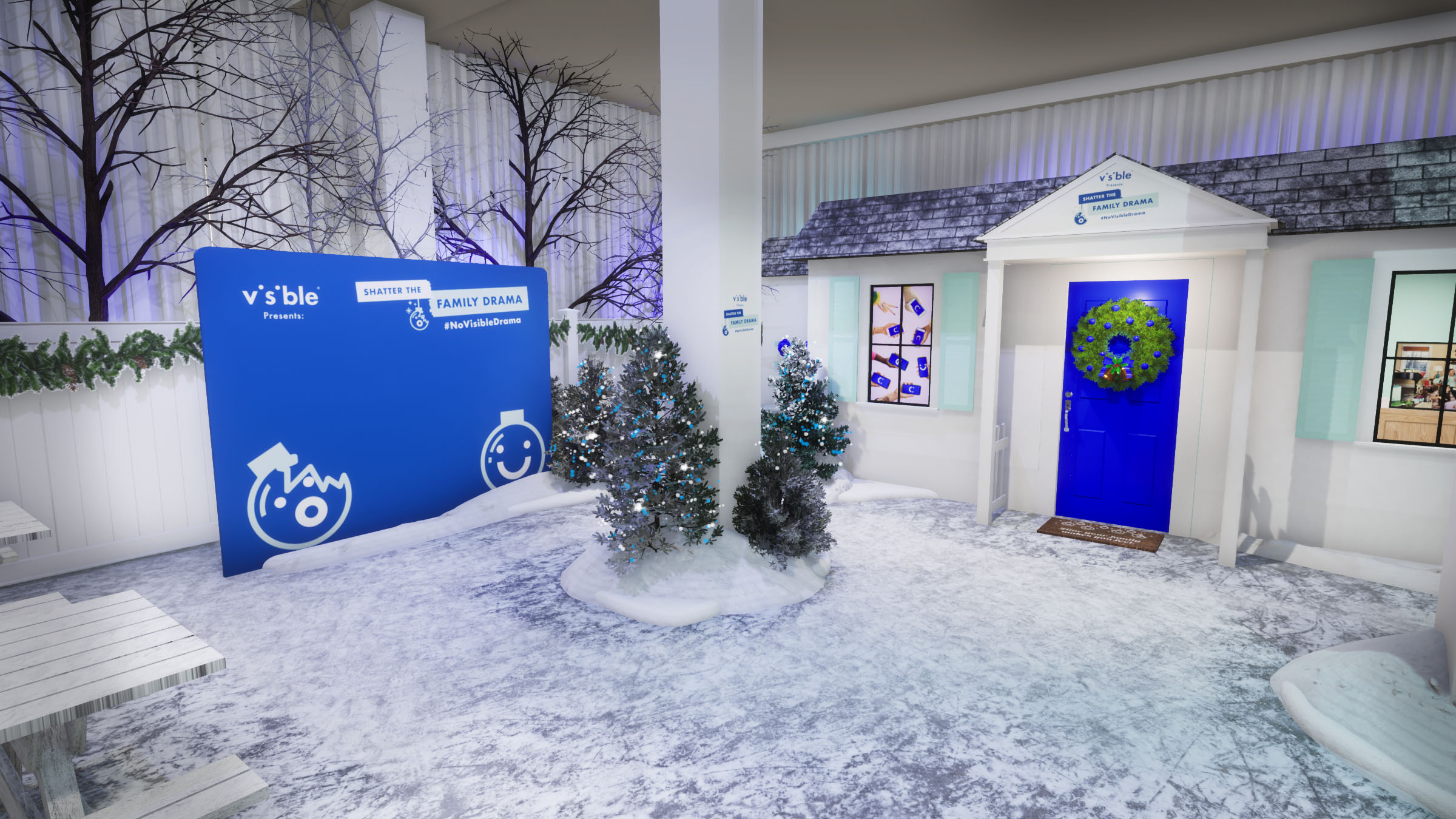 - An in-person smash room event, aptly-titled Visible Presents: Shatter the Family Drama, at 29 W 23rd St. New York, NY 10010 on December 17-18, 2021. Attendees can walk through a "home for the holidays" themed living room and take out their holiday-related family frustrations by smashing everything in sight. For example: