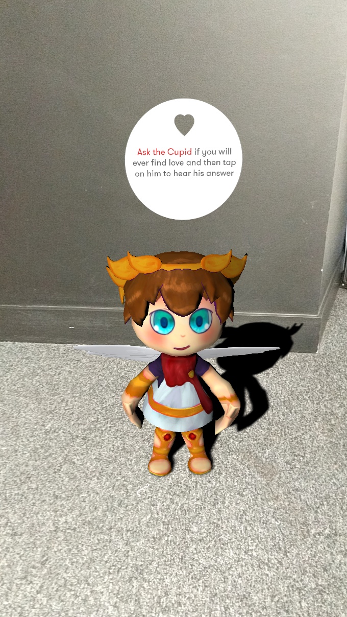 - While still holding the record button, just tap Cupid's head which has appeared on the ground facing the camera.