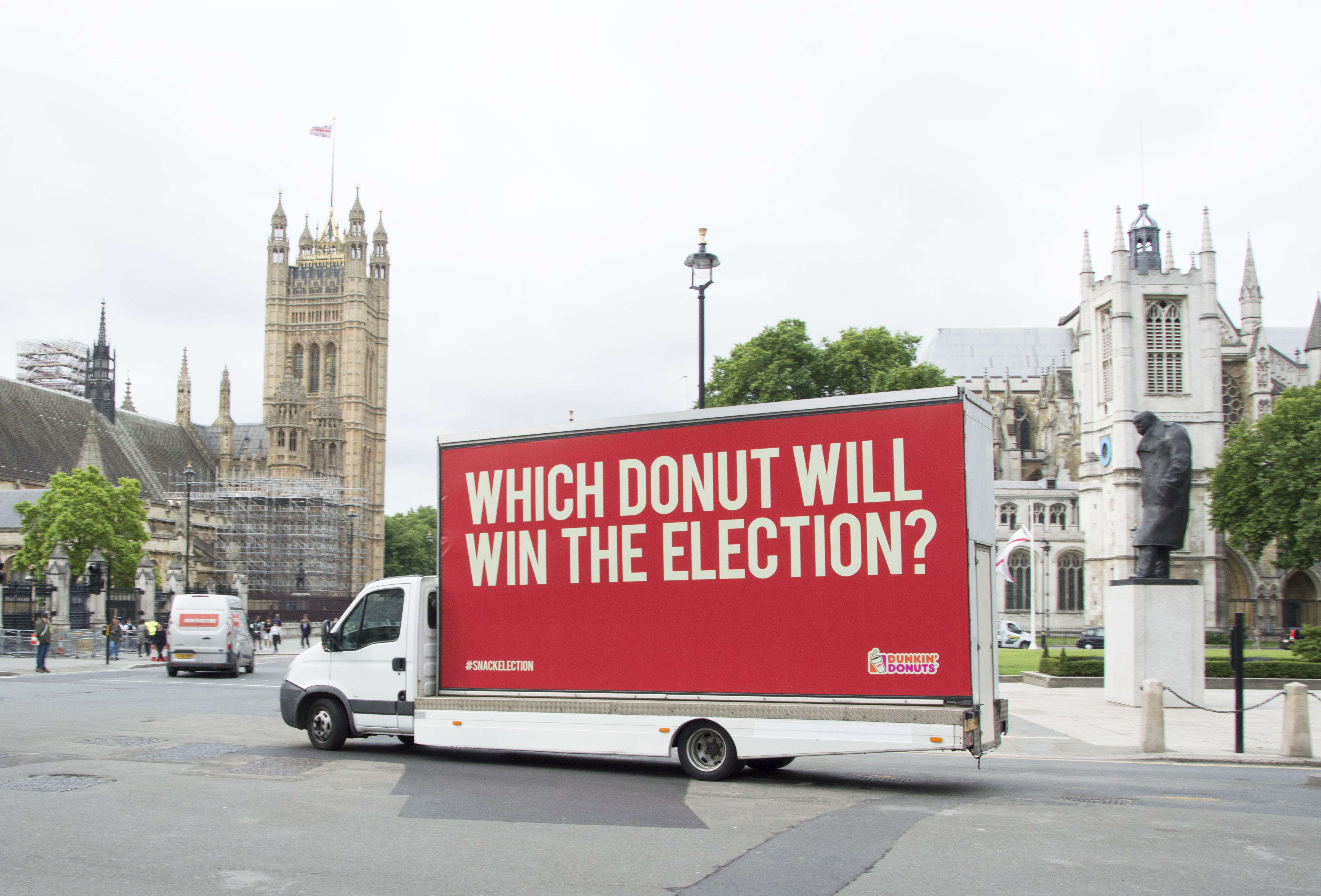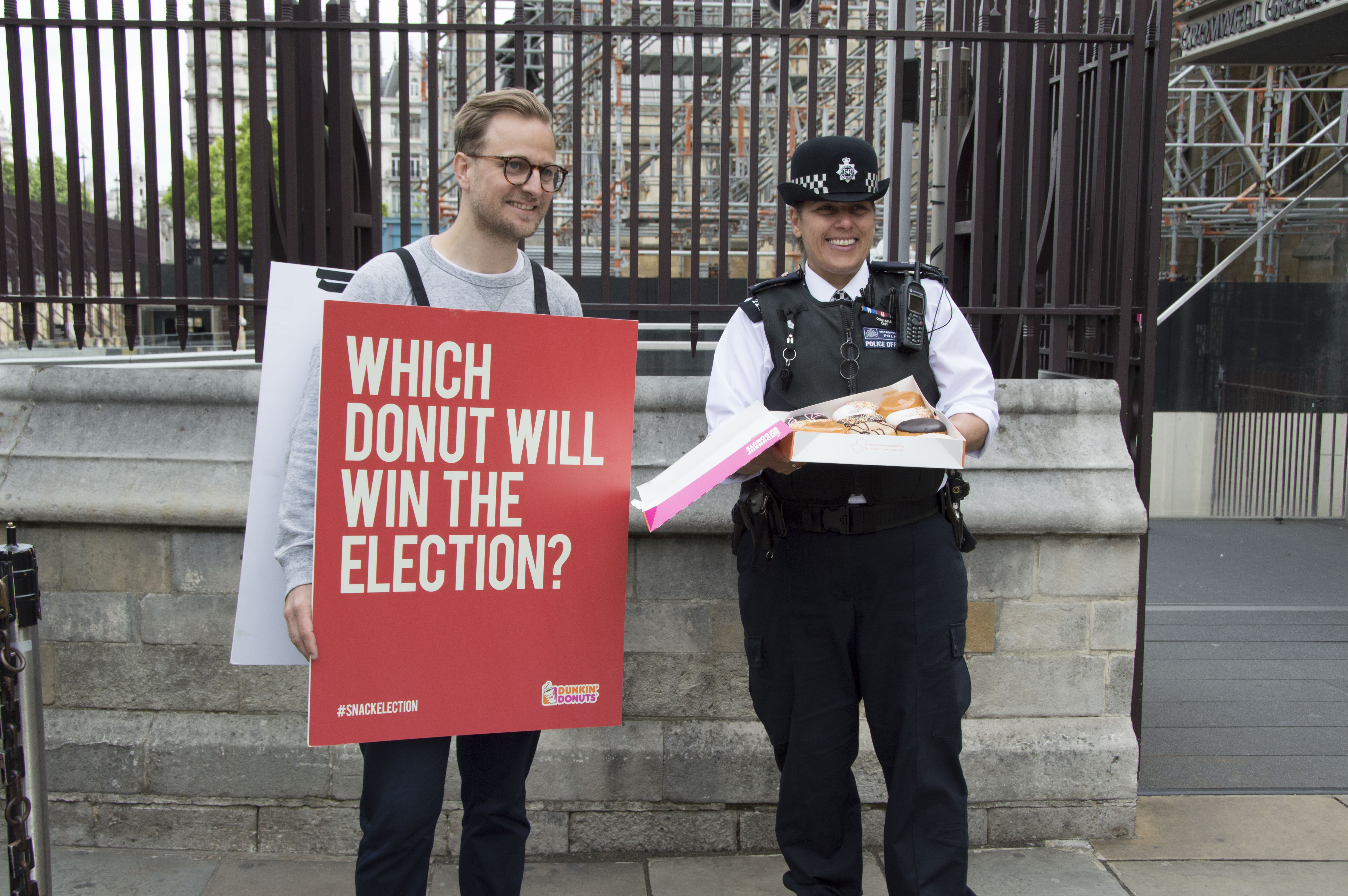 Dunkin’ Donuts is aiming to lighten the mood whatever the political outcome of today’s General Election Day (June 8) with its latest UK campaign, ‘The Snack Election’.